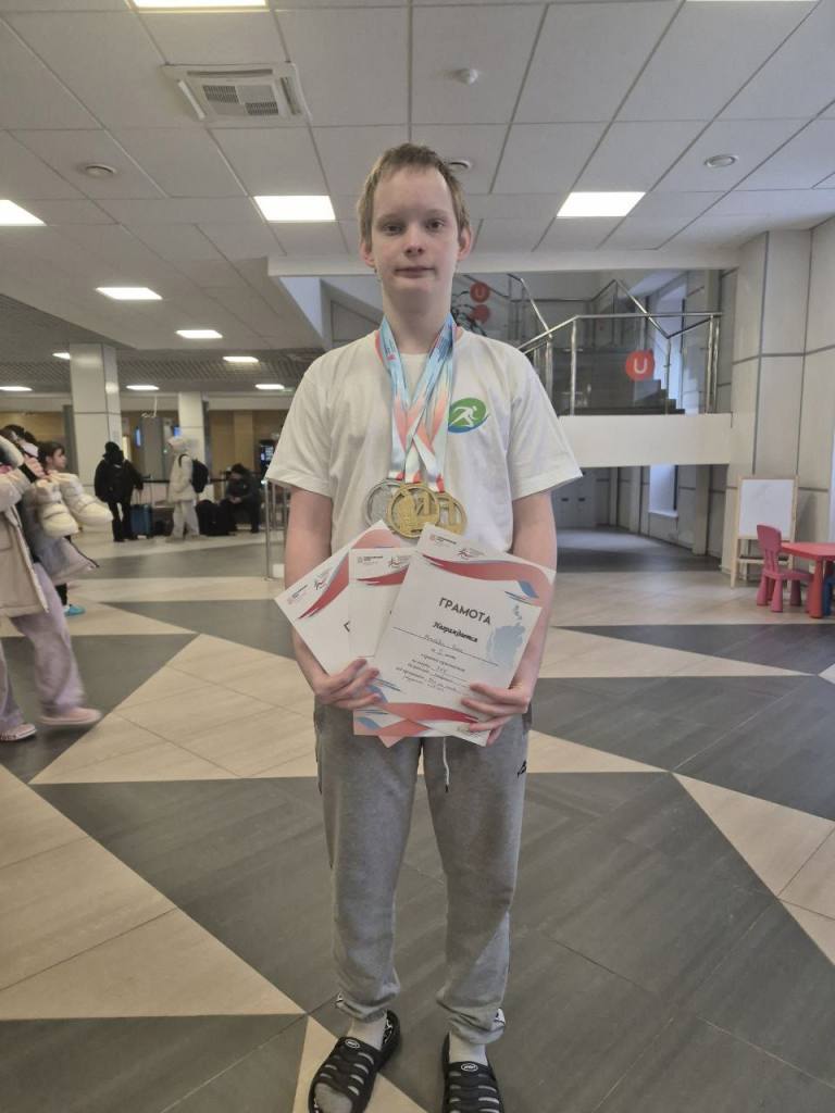 По итогам соревнований Роман занял 1 место вольным стилем на дистанции 50 м., 1 место на спине на дистанции 50 м. и 2 место на спине на дистанции 100 м. Поздравляем Романа с достойным результатом и желаем дальнейших спортивных успехов.