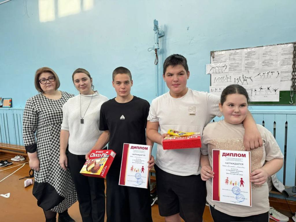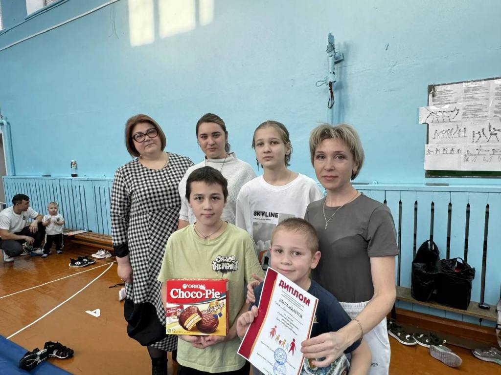 В преддверии Дня многодетной семьи в спортивном зале Северо-Енисейской средней школы №2 состоялись весёлые и азартные соревнования среди многодетных семей «Папа, мама, я — спортивная семья».